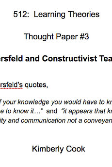 The first paper examined the behaviourist theory and its influence on learning. A thought that I brought up in my paper was the importance of a teacher or student to ask 'why'. This is a common point that was discussed throughout my MET courses. I strongly believe that if a person (child or adult), does not understand the underlying reasons of a concept (to be able to answer why), then deep learning has not occurred. It is the teacher's responsibility to design opportunities to scaffold deeper understanding and to be able to explain 'why'.